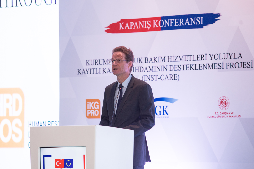 Avrupa Birliği Türkiye Delegasyonu Başkanı Büyükelçi Nikolaus Meyer-Landrut da Türkiye’de birçok başarılı anne olduğunu bildiğini ancak çalışma yaşamı dışındaki dengeyi korumakta zorlandıklarını belirterek, “Kadınlar mesleki yaşamları ile ilgili büyük fedakarlıklarda bulunabiliyor. Bu proje sayesinde 18 bin anneyi çalışma yaşamında kalmaya ya da çalışma yaşamına dönmeye teşvik edebildik. Çalışma ve Sosyal Güvenlik Bakanlığı’na bu konuda yaptıkları çalışmalar için teşekkür ediyor. Devamında yapılacak çalışmalar için de esin kaynağı olmasını diliyorum” değerlendirmesinde bulundu.