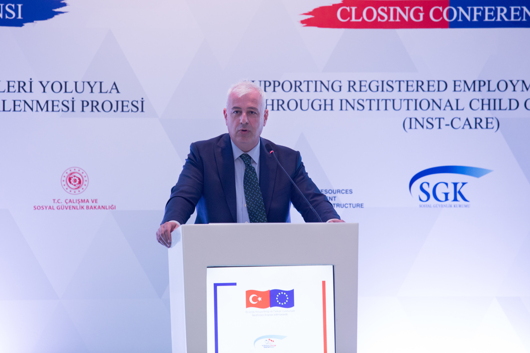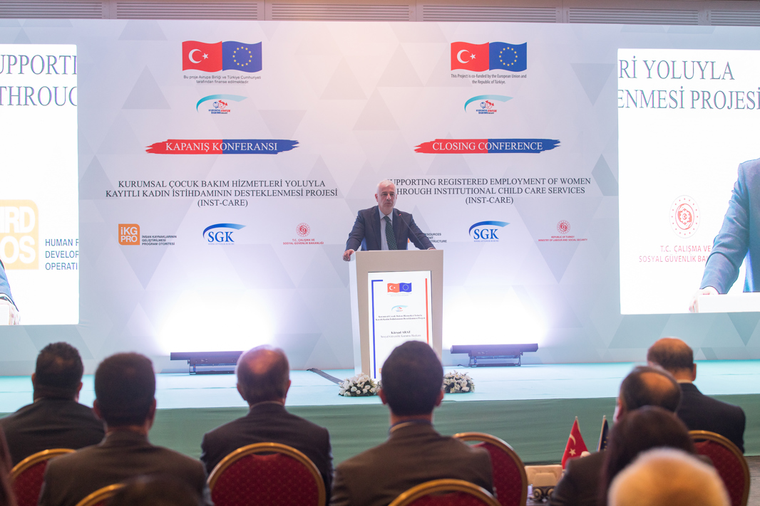 Çalışma ve Sosyal Güvenlik Bakanı Vedat Bilgin, Çalışma ve Sosyal Güvenlik Bakanlığı Sosyal Güvenlik Kurumu ile Avrupa Birliği iş birliğinde düzenlenen Kurumsal Çocuk Bakım Hizmetleri Yoluyla Kayıtlı Kadın İstihdamının Desteklenmesi Projesi’nin Kapanış Konferansı’na katıldı.