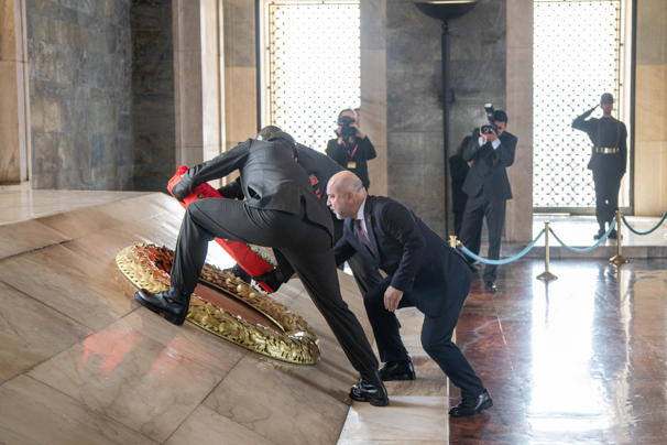 SGK Başkanı Kaya ve beraberindeki heyet Gazi Mustafa Kemal Atatürk’ün mozolesine çelenk bıraktı. Ardından saygı duruşuna geçildi.