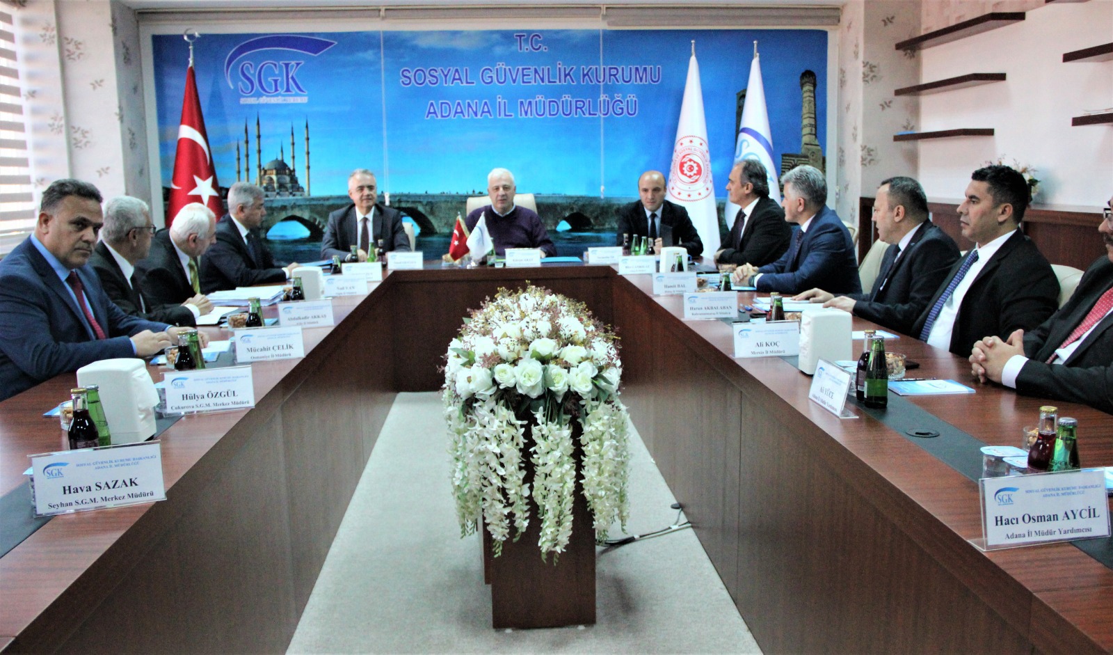 Devamını OkuSosyal Güvenlik Kurumu (SGK) Başkanı Kürşad Arat, Adana Sosyal Güvenlik İl Müdürlüğünde düzenlenen İl Müdürleri Koordinasyon Toplantısına katıldı. 2022 yılı iş ve işlemlerinin görüşüldüğü toplantıda SGK Başkanı Arat, yürütülen faaliyetler hakkında il müdürlerinden bilgi aldı. Toplantıda yaptığı ko...