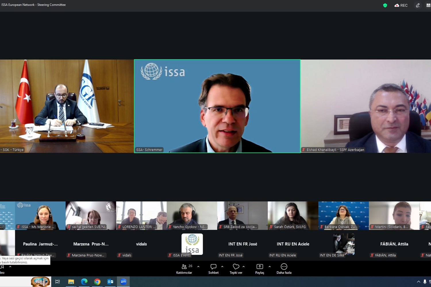 ISSA Genel Sekreteri Marcelo Abi-Ramia Caetano ile ISSA üyesi kurumların Avrupa bölge temsilcilerinin çevrim içi katılım sağladığı toplantıda, 2026-2028 döneminde Avrupa Ağı Sekretaryası görevini yürütme sorumluluğu da SGK’ye devredildi.